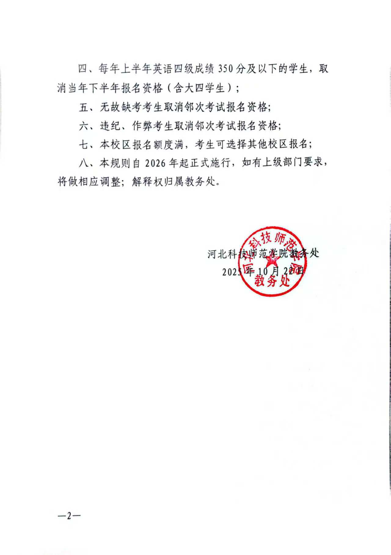 河北科技师范学院全国大学英语四级考试报名规则.pdf